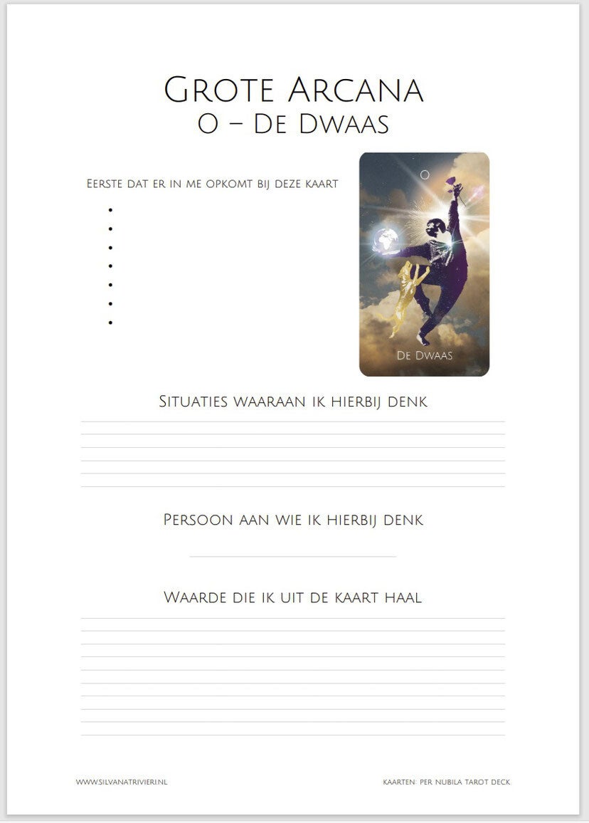 Deze printable heb ik gemaakt om je te helpen af te stemmen op de kaarten van de Grote Arcana. Door je te focussen op wat er in je opkomt (ongeacht wat er over het algemeen wordt beschreven) kom je meer in contact met je intuïtie en je persoonlijke associaties. Zo ontwikkel je een eigen gevoel over de kaarten en krijg je meer connectie. Wil je hier dieper induiken? Dan is de Grote Arcana Quest misschien iets voor jou!